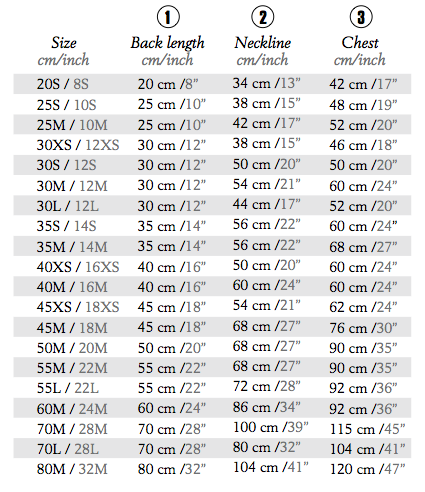 Výběr velikosti: změřte stojícího pejska od kohoutku mezi lopatkami až ke kořeni ocásku. Vyberte pak nejbližší velikost oblečku míře, kterou jste naměřili. Například, naměřili jste 62cm délku zad volte velikost oblečku 60cm.